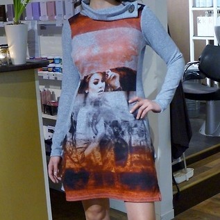 Harlekin storlek 38 från Design Viola Ballin. Klänningen är i 5% elastan 95% polyester. Längd bak från axel 85 cm i storlek 38. Höger och vänster finns en knapp som man kan öppnar, fint detail. På baksidan finns samma bild. Eko-certifierade. Innehåller inga skadliga färgämnen.